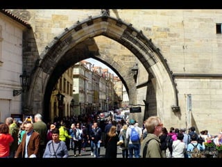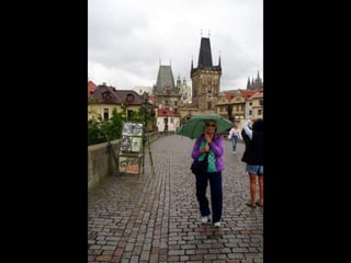 This document provides photos from a trip to Prague in June 2018, including photos of King Charles Bridge, a sculpture called Prague Baby, and a pedal cab ride to a hotel. It also includes a photo of the oldest Jewish synagogue in Europe.