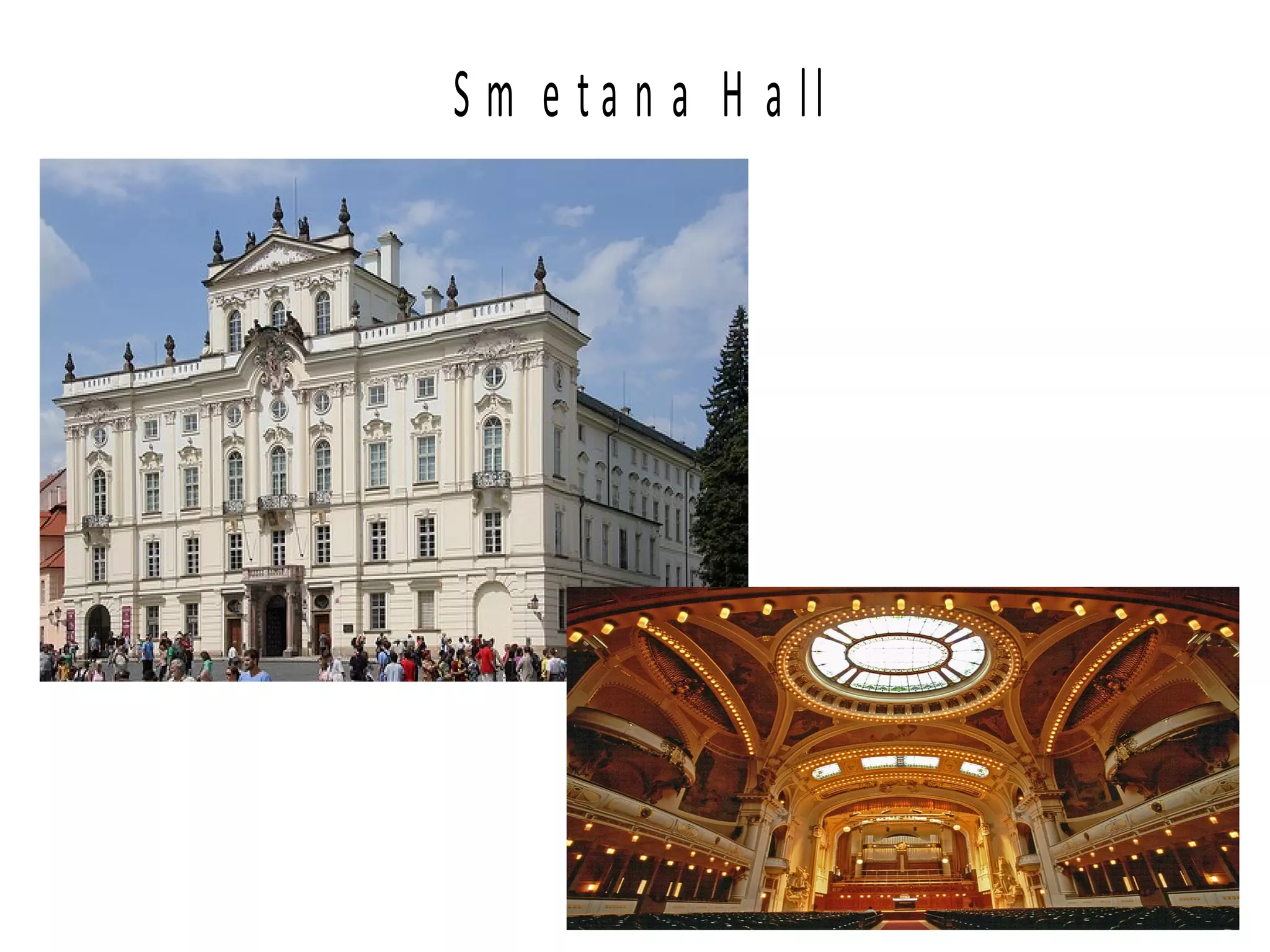 Prague has an important musical tradition exemplified by the piece "The Moldavian River" composed by Czech composer Smetana which the listener is hearing. The document will now show some buildings dedicated to music in Prague that showcase its musical heritage.