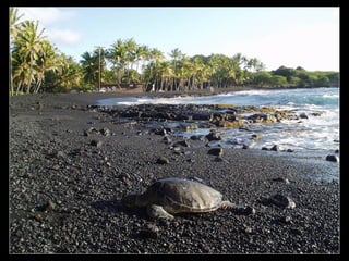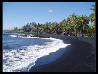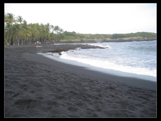 Praia de PunaluuAreias de cor negra no Hawaii