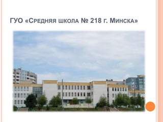 Отчёт по учебной практике студентов группы 431 в средней школе № 218 г. Минска описывает деятельность будущих педагогов под руководством Светланы Валькович. Школа, основанная в 1994 году, ориентирована на развитие творческой и активно жизнелюбивой личности с разнообразными творческими и спортивными секциями. В документе также обозначены направления работы с учащимися, включая диагностику, коррекционно-развивающие и профилактические мероприятия.