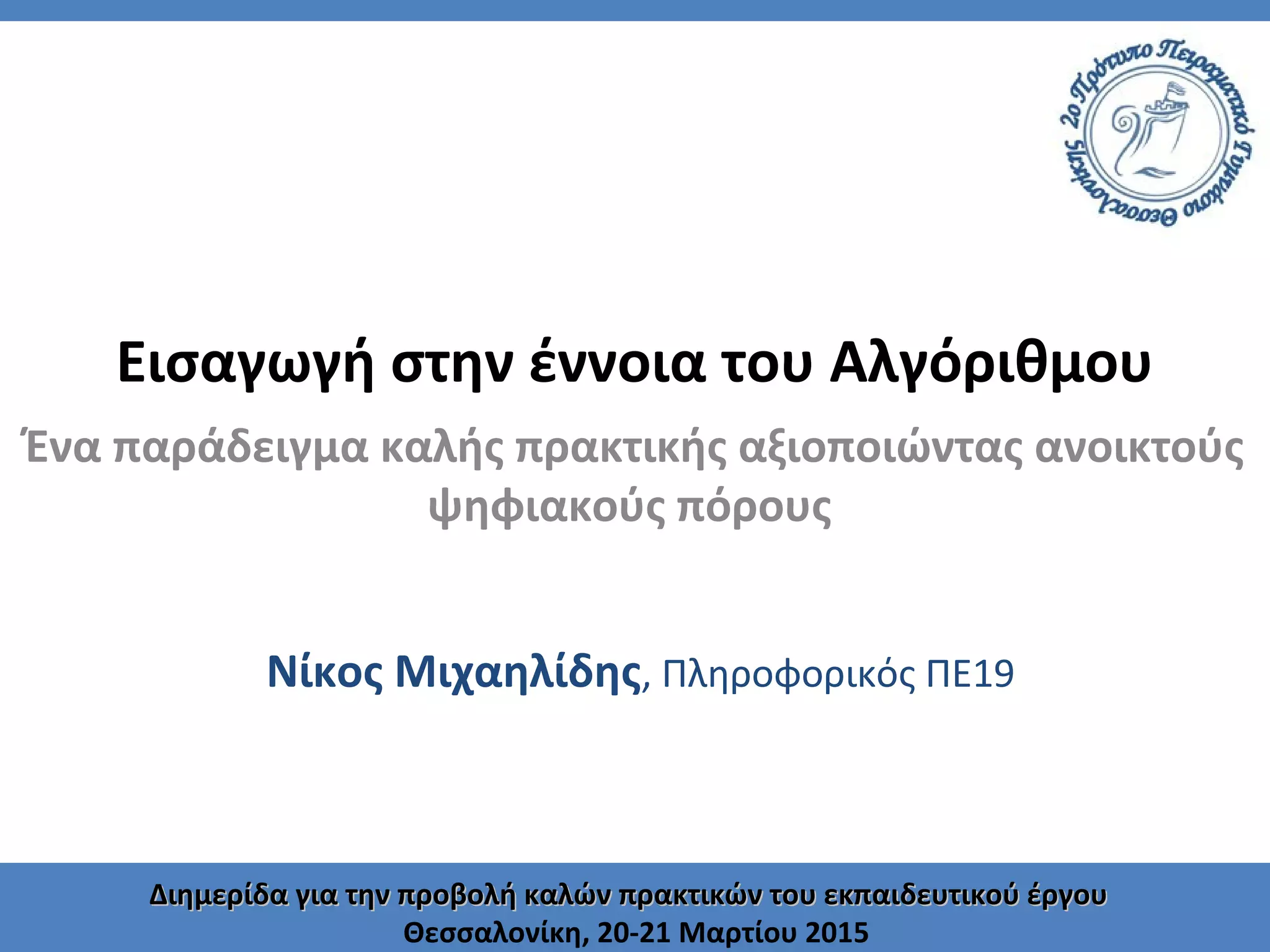 Εισαγωγή στην έννοια του Αλγόριθμου: Ένα παράδειγμα καλής πρακτικής αξιοποιώντας ανοικτούς ψηφιακούς πόρους