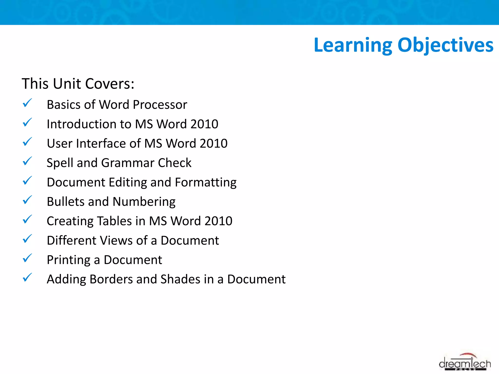 This document provides an overview of the basics of word processing using Microsoft Word 2010, including its user interface, editing and formatting tools, and document management features. Key topics covered include starting and opening documents, saving and closing documents, formatting text using bold, italics and underline, checking spelling and grammar, using copy/paste and cut/paste, and finding text within a document. The goal is to introduce learners to the basic functions of a word processor.
