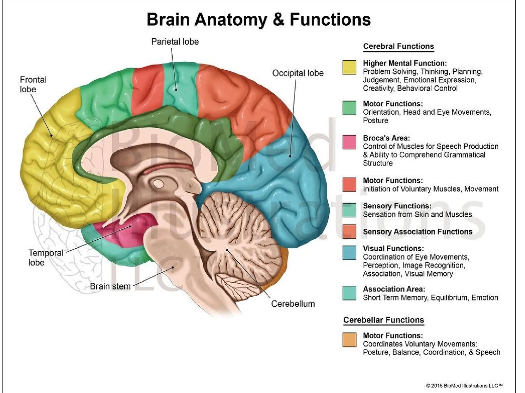 fissures and lobes. Its function includes the control of posture and the coordination of