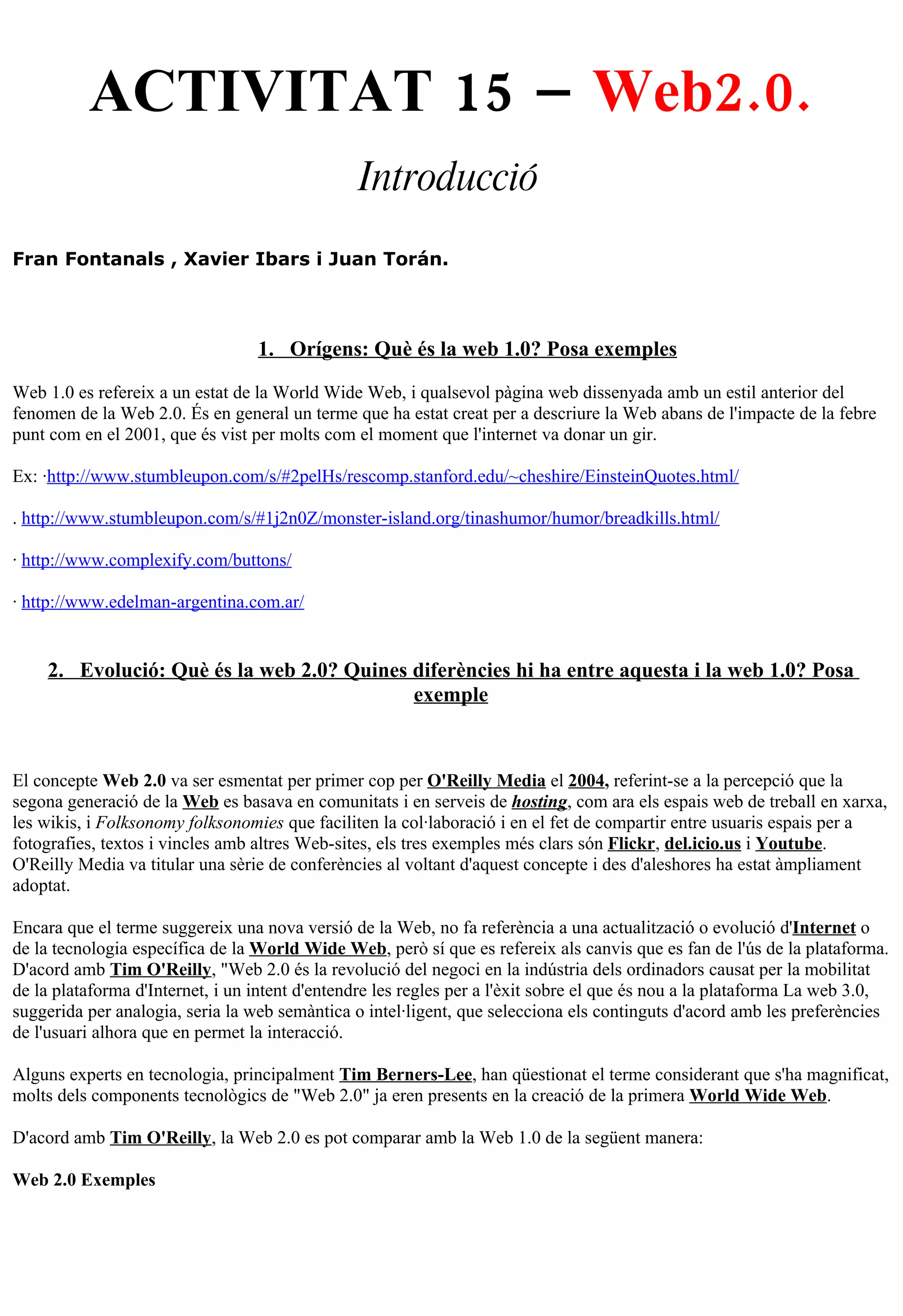 2. Evolució: Què és la web 2.0? Quines diferències hi ha entre aquesta i la web 1.0? Posa