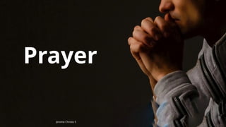 The document outlines various aspects and types of prayer, including petition, communication with God, intercession, thanksgiving, and praise. It emphasizes the importance of praying sincerely, from the heart, and according to God's will, while also providing biblical references and practical tips for effective prayer. Additionally, it highlights Jesus Christ as the perfect example of prayer and includes a sample prayer following the teachings of the Lord's Prayer.
