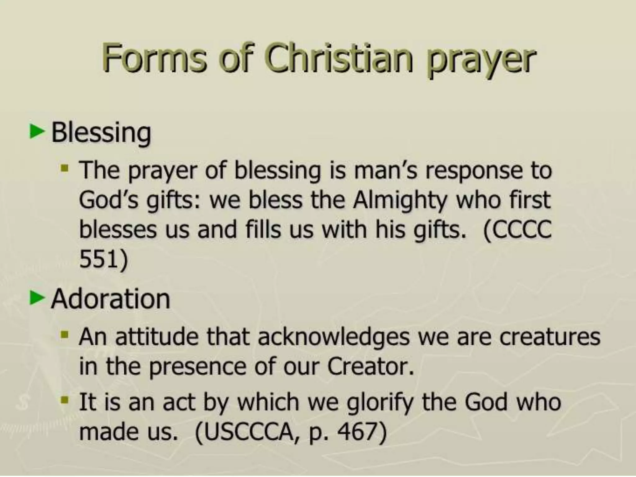 - Adoration and blessing prayers acknowledge God's greatness and show reverence.