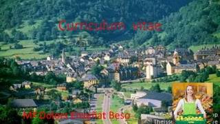 Ma Dolors Enseñat Beso's curriculum vitae provides her personal details including her phone number, email, and date and place of birth. It lists her strong linguistic abilities in Aranese, Catalan, Spanish, French, and English. Socially, she is described as very hardworking, responsible, sociable, and collaborative. Her work experience includes roles as a hotel receptionist for 3 years, souvenir shop clerk from 2008-2010, and perfume store clerk from 2011-2014. Her hobbies include reading, cinema, dancing, and sports. The document closes with the statement "working makes us happy."