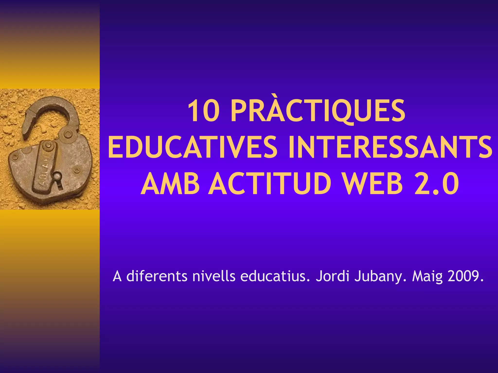 10 PRÀCTIQUES EDUCATIVES INTERESSANTS AMB ACTITUD WEB 2.0 A diferents nivells educatius. Jordi Jubany. Maig 2009.