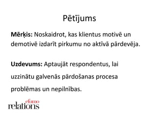 Mērķis: Noskaidrot, kasklientus motivē un