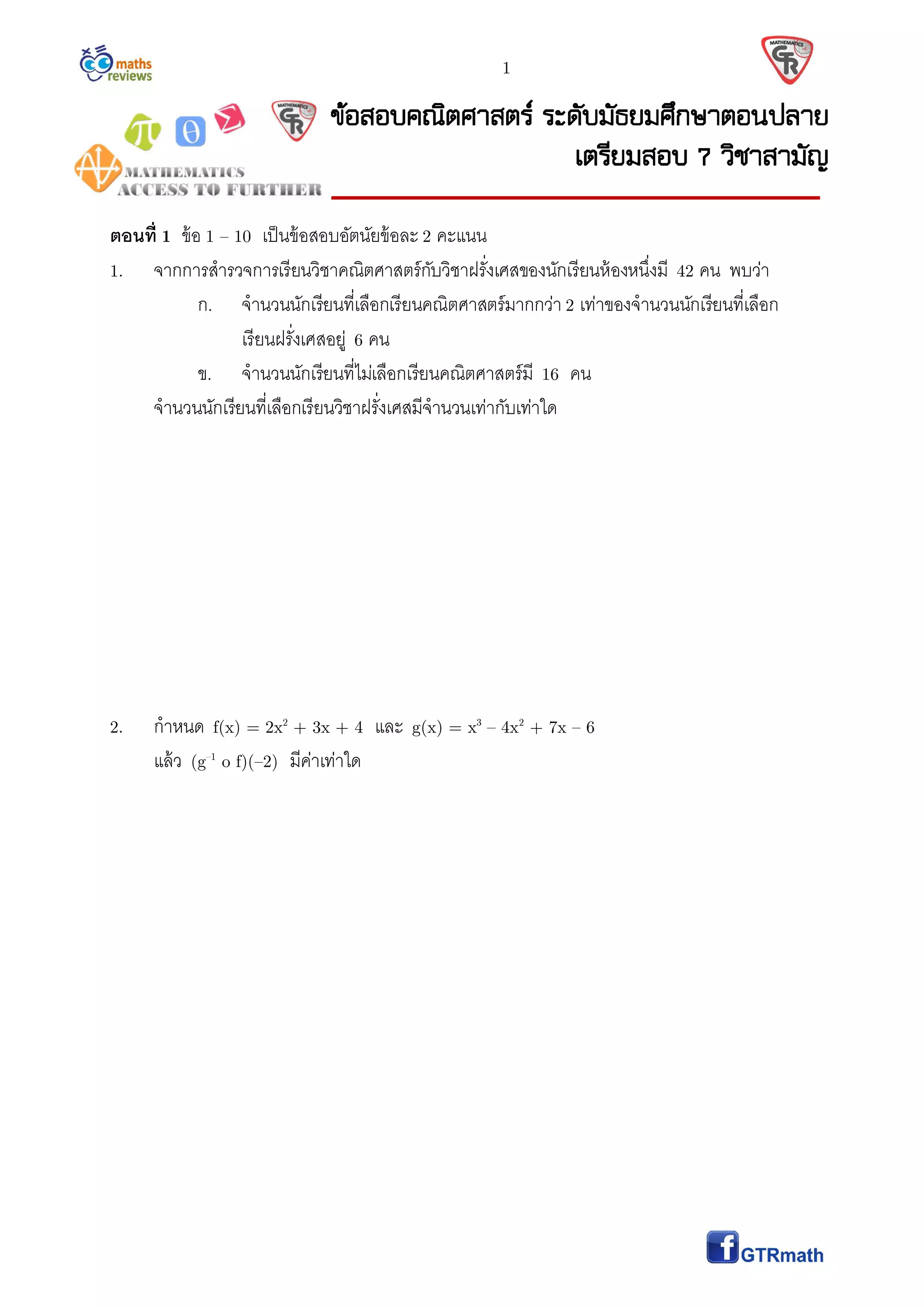 12. ให้ m เป็นจํานวนเต็มบวก ซึง ห.ร.ม. ของ m และ 56 เท่ากับ 8