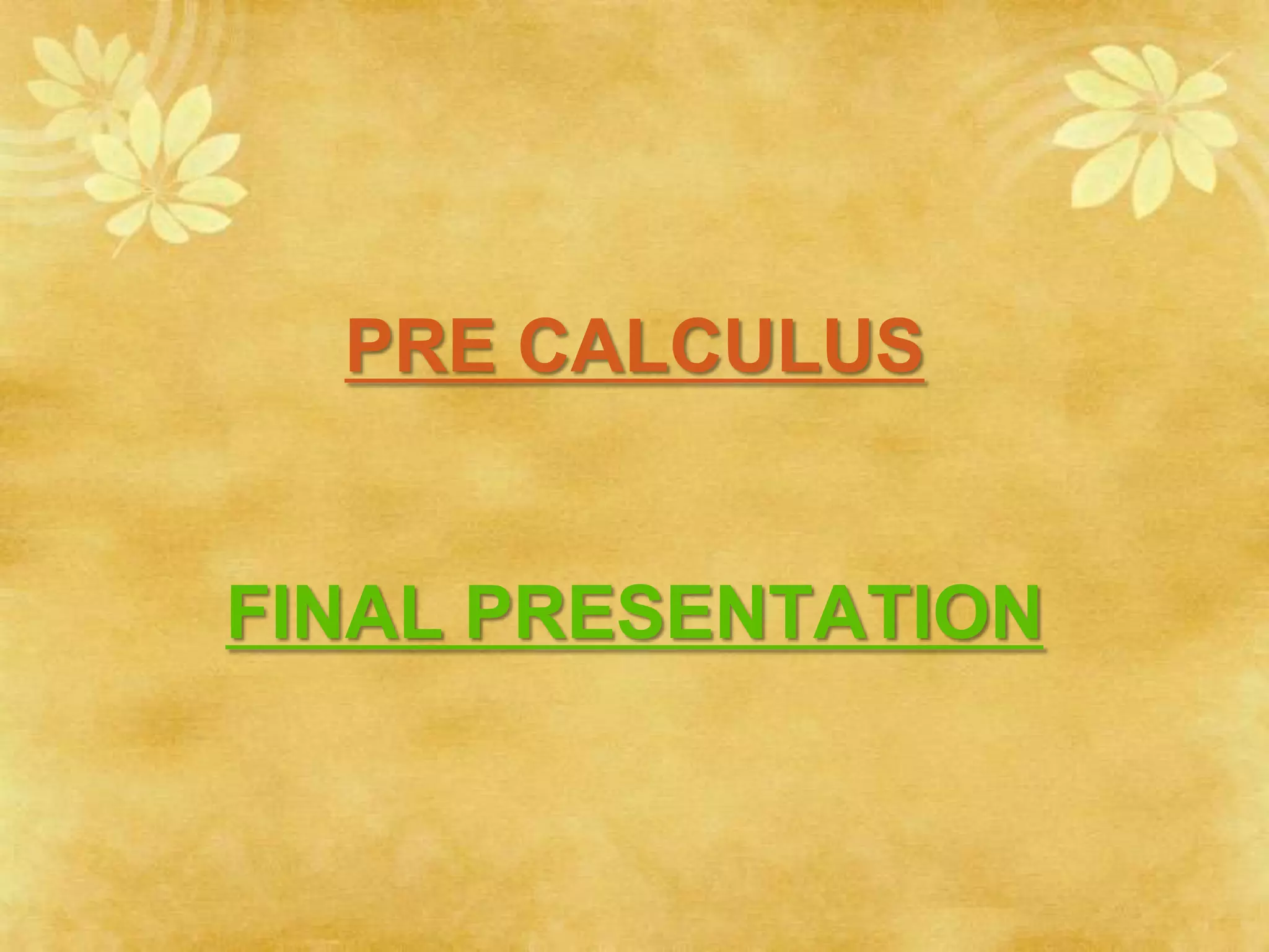 This document provides a summary of topics covered in a pre-calculus final presentation, including quadratic inequalities, circles, and parabolas. It defines quadratic inequalities and how to solve them, provides the standard equation for a circle and how to find the equation of a circle given its center and radius, and defines key properties of parabolas such as their shape, axis of symmetry, vertex, and intercepts. Sample problems are worked through demonstrating how to solve quadratic inequalities, find the equation of a circle, and graph a parabola labeling important features.