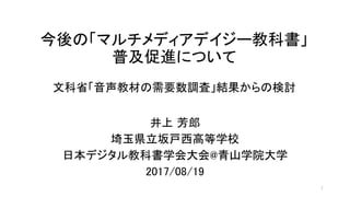 今後の「マルチメディアデイジー教科書」普及促進について -文科省「音声教材の需要数調査」結果からの検討- On diffusion of "multimedia daisy textbook", consideration from the research by MEXT.