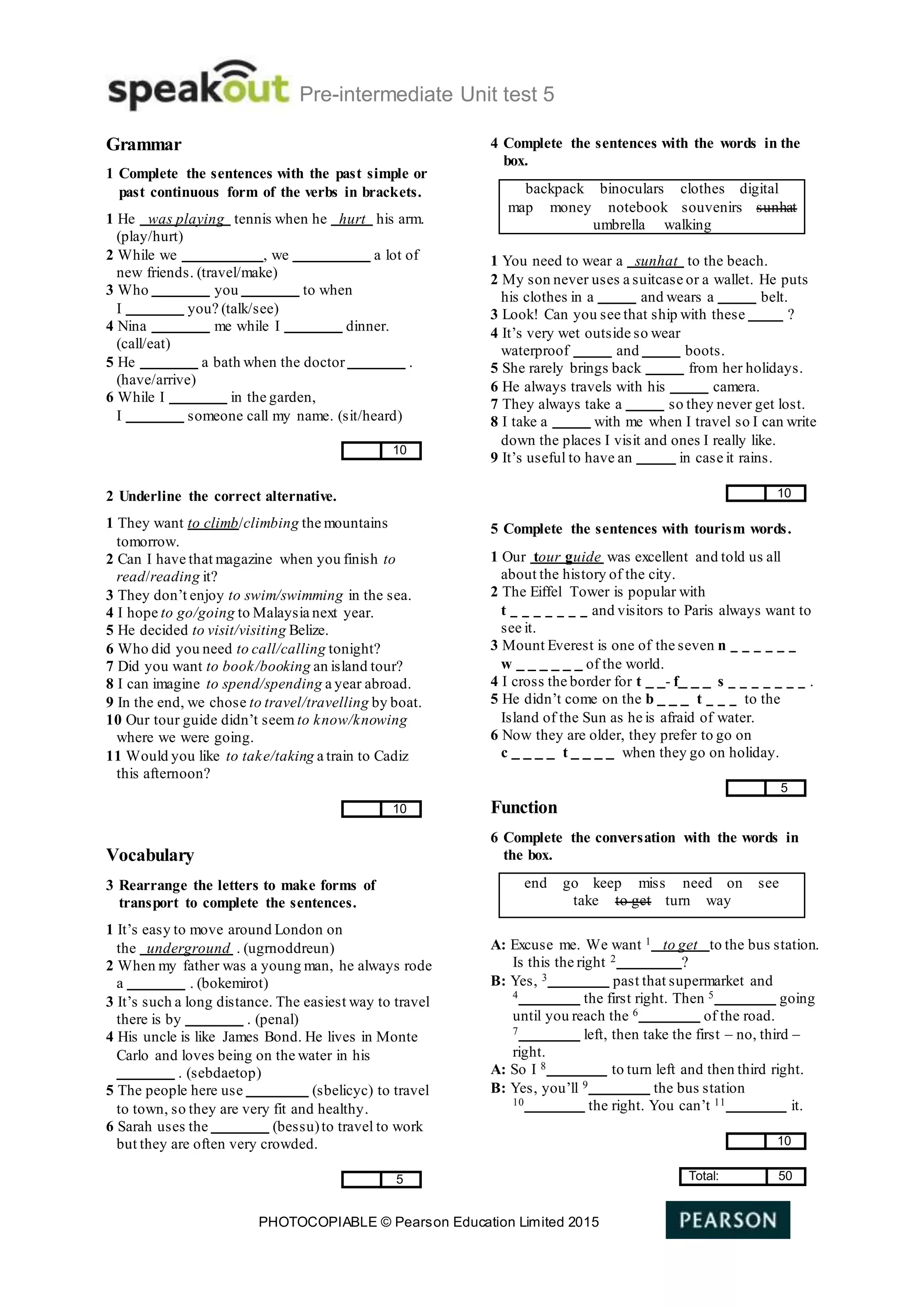 1. Students must complete sentences using the past simple or past continuous form of verbs provided in brackets.