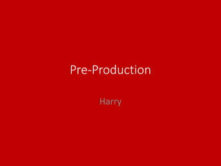 The document provides information about pre-production for various types of projects. It discusses that pre-production is important for organizing a project before production starts. It then lists typical paperwork that may be required for pre-production of print, video, game, and audio projects, including style sheets, storyboards, schedules, budgets, and contingency plans. It also includes examples of pre-production materials like a style sheet, color scheme, storyboard, and production schedule for the reader's project.