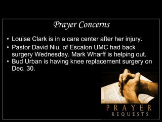 Pre-service slides for 26 December, 2010 CUMC Oakdale, CA.
