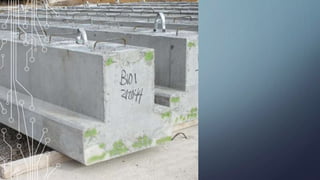 Precast concrete is concrete that is cast in reusable molds or "forms" that are then cured in a controlled environment. This allows precast concrete construction to provide several benefits over traditional cast-in-place concrete including time savings, quality assurance, cost effectiveness, durability, aesthetics, and safer construction. However, precast concrete also has some disadvantages such as high initial investment costs, transportation issues, handling difficulties, limitations for modifications, and needing sensitive connection work. Overall, precast concrete can be a good solution for large construction projects where its benefits outweigh its disadvantages.