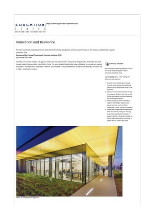 1. The document discusses how precast concrete can provide energy efficiency, resilience, and versatility for buildings.