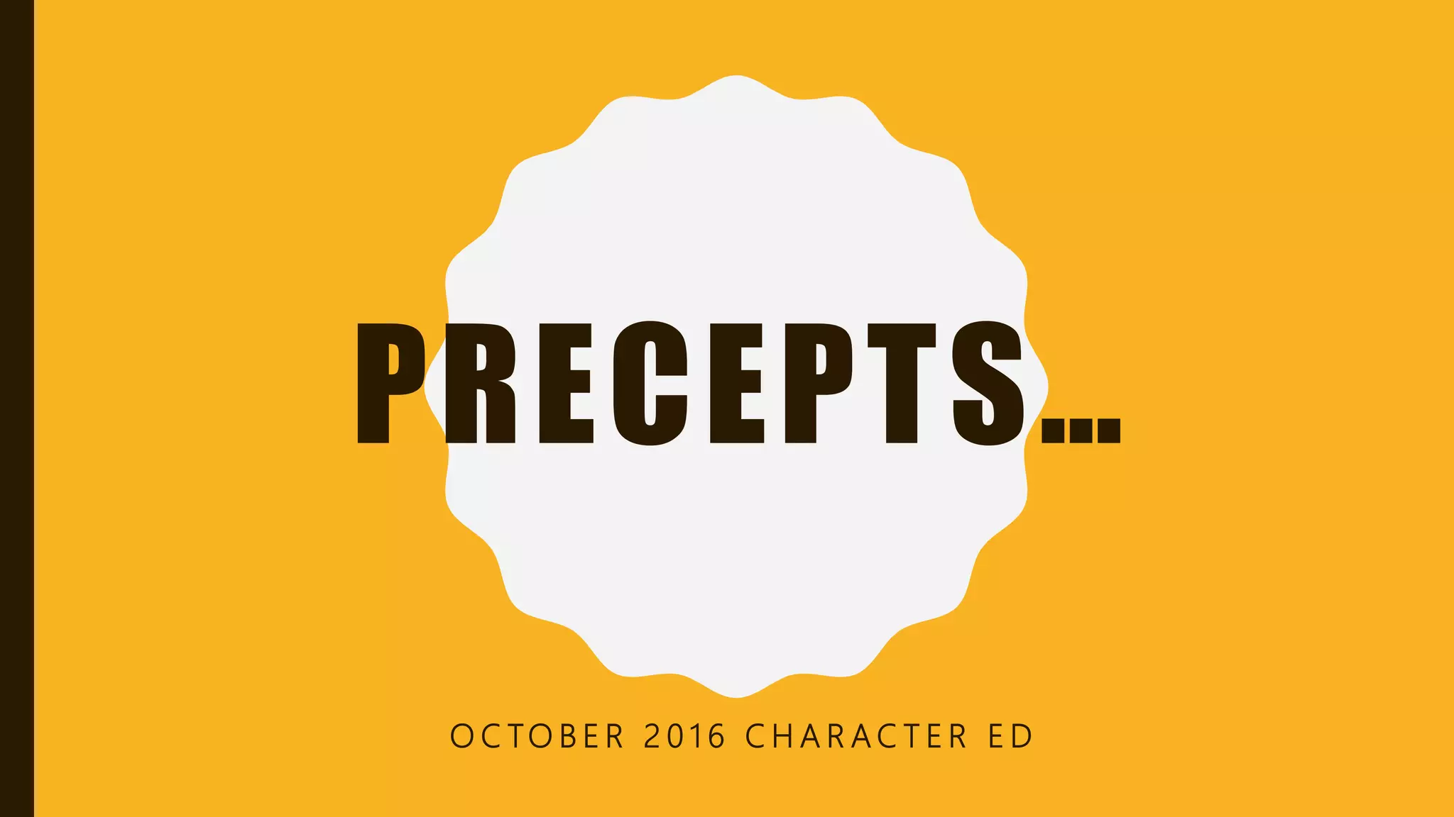 This document discusses the concept of precepts and uses examples from the book Wonder. It begins by defining a precept as a general rule or motto to guide behavior or thought. The document then provides context about the book Wonder and its theme of kindness. It describes how in the story, the teacher Mr. Browne introduces precepts to his class and chooses "When given the choice between being right and being kind, choose kind" as the first precept of the year. The document prompts a discussion about why Mr. Browne chose this precept and what students can do to be kind to others at school.