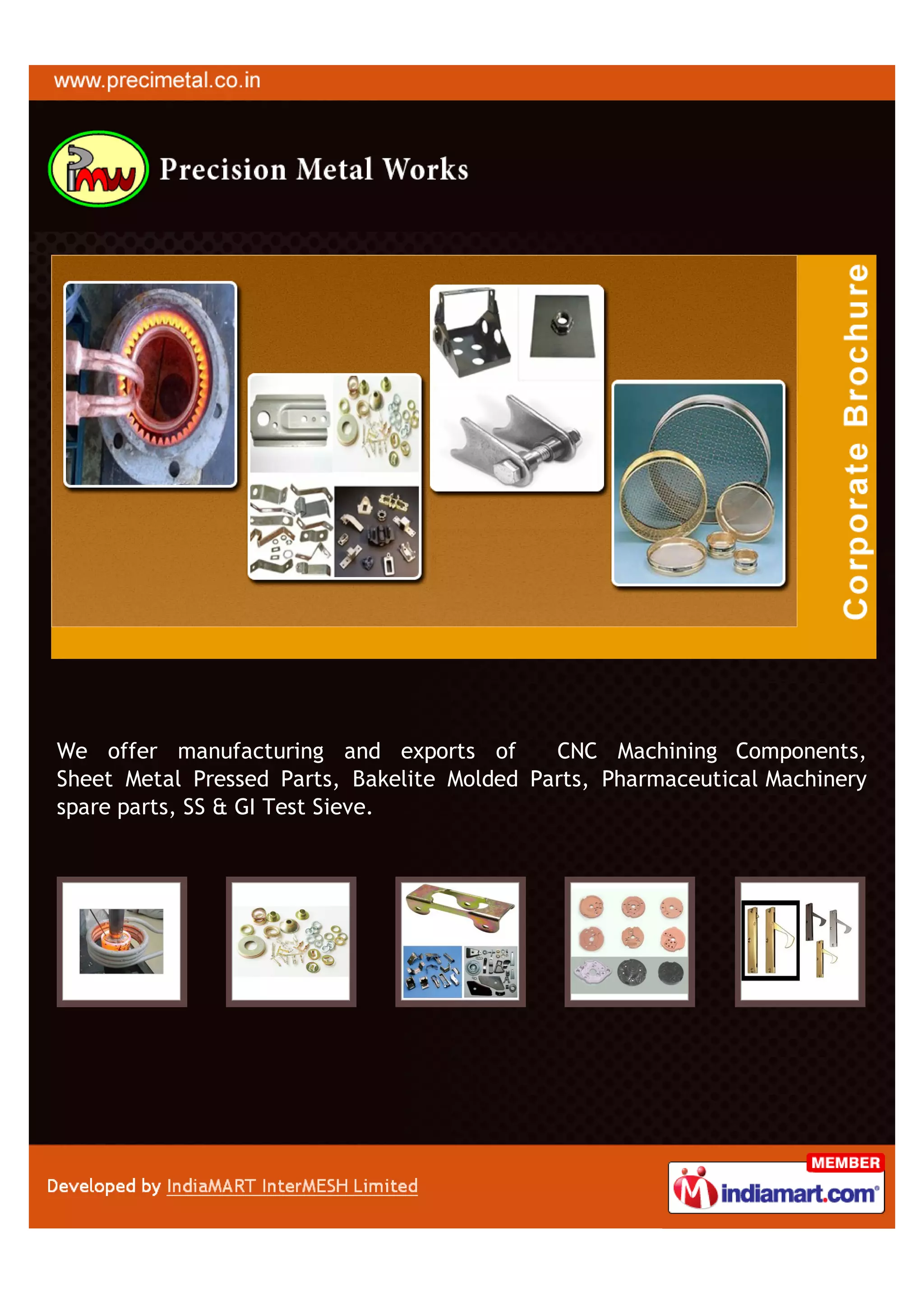 Precision Metal Works, established in 1978, specializes in manufacturing and exporting CNC machining components, sheet metal pressed parts, molded parts, and pharmaceutical machinery spare parts. The company boasts a diverse clientele across multiple regions including the Indian subcontinent and the USA, and emphasizes high-quality, customized solutions with a commitment to technological advancement and zero defects. They also offer brazing services and various exhibition display systems to meet customer needs.