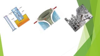 Precipitation occurs in solid or liquid forms when water vapor condenses and falls from clouds to the ground. The main types of precipitation are snow, hail, and rain. Snow forms when water vapor sublimates directly to snowflakes below freezing. Hail forms when water droplets are carried to high altitudes by updrafts and freeze into layers around a snow or ice core. Rain forms through condensation and falling water droplets. Precipitation affects ecosystems, economies, and transportation.