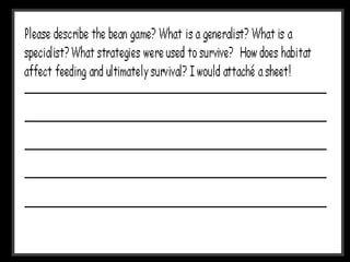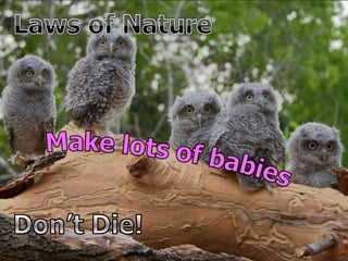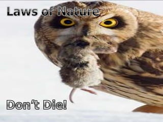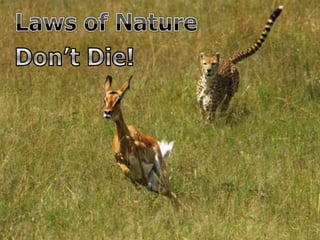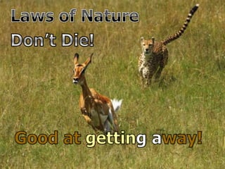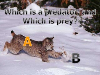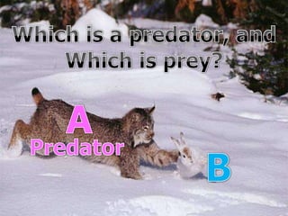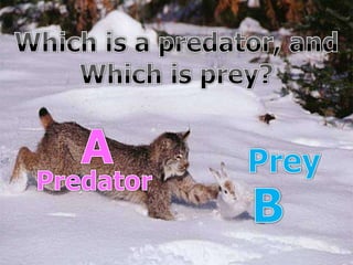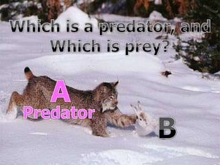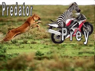 The document discusses the concepts of predator and prey, highlighting the characteristics of each and their roles in ecosystems. It explains the differences between generalist and specialist species using rhinos as examples and covers various survival techniques for both to avoid predation. Additionally, it touches on the advantages of group living and the behaviors that aid in evading predators, such as flocking and coloration patterns.