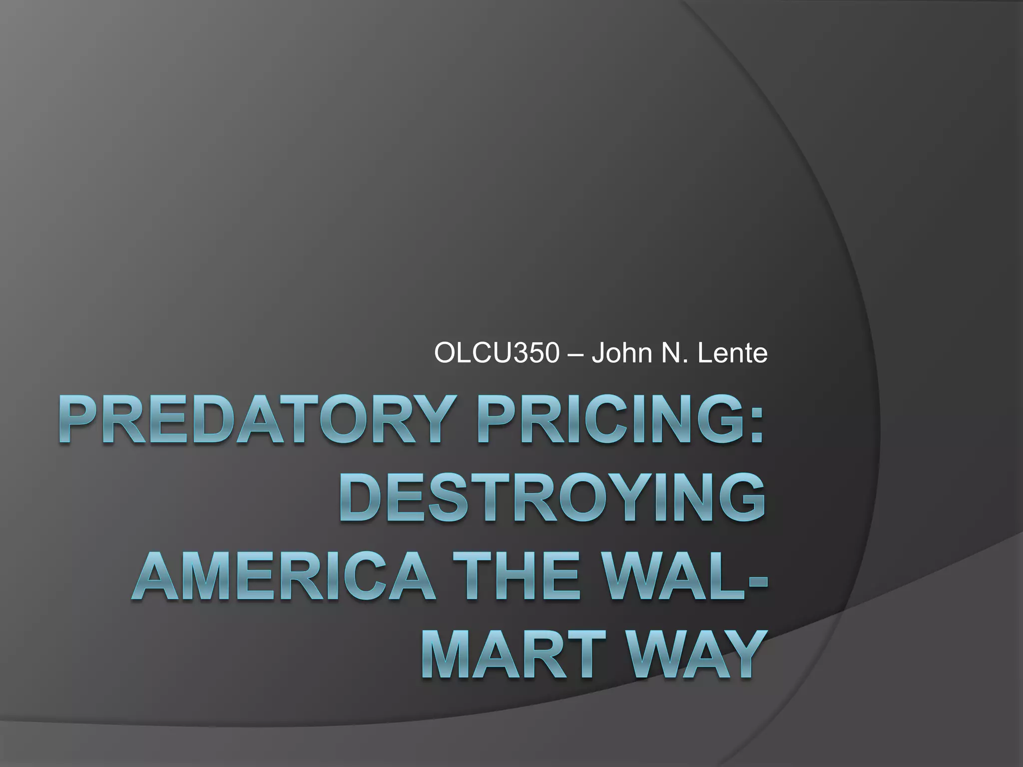 The document discusses predatory pricing, defined as reducing prices to drive competitors out of business, and highlights its implications using Wal-Mart as a case study. It notes that while Wal-Mart's low pricing can benefit consumers, it has resulted in significant negative impacts on local economies, wages, and local retail sales. Wal-Mart's presence in communities has been associated with increased poverty rates and a rise in reliance on public healthcare for its employees' families.