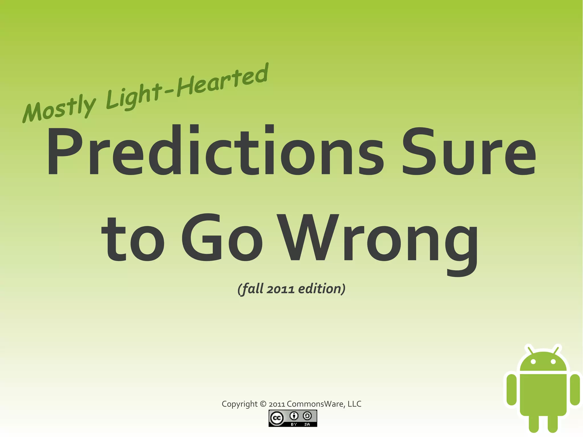 This document contains predictions for the mobile application landscape in 2014 from a 2011 perspective. It predicts that: