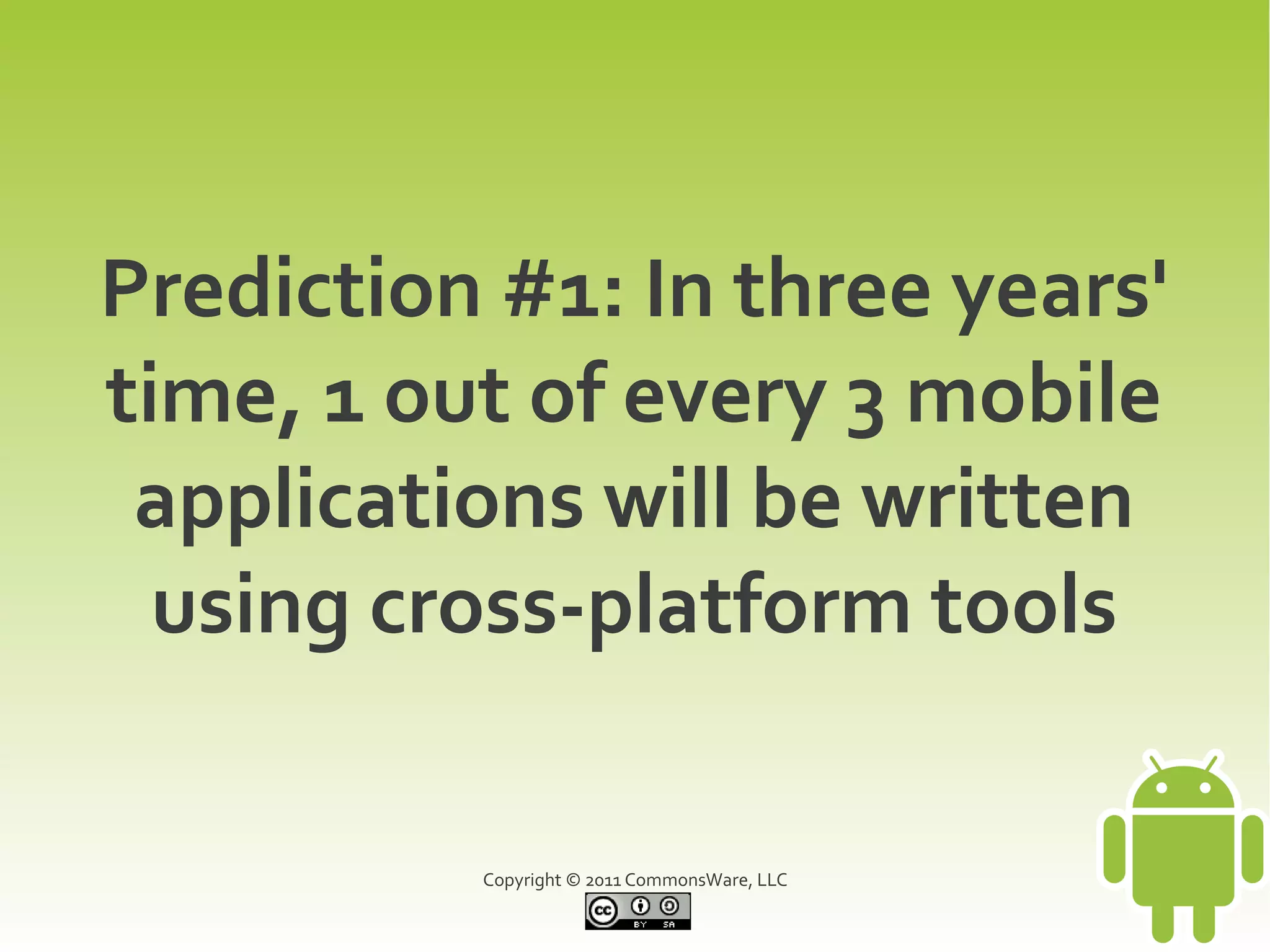 1) One third of mobile apps will be written using cross-platform tools like PhoneGap due to desires to target multiple platforms without separate ports.
