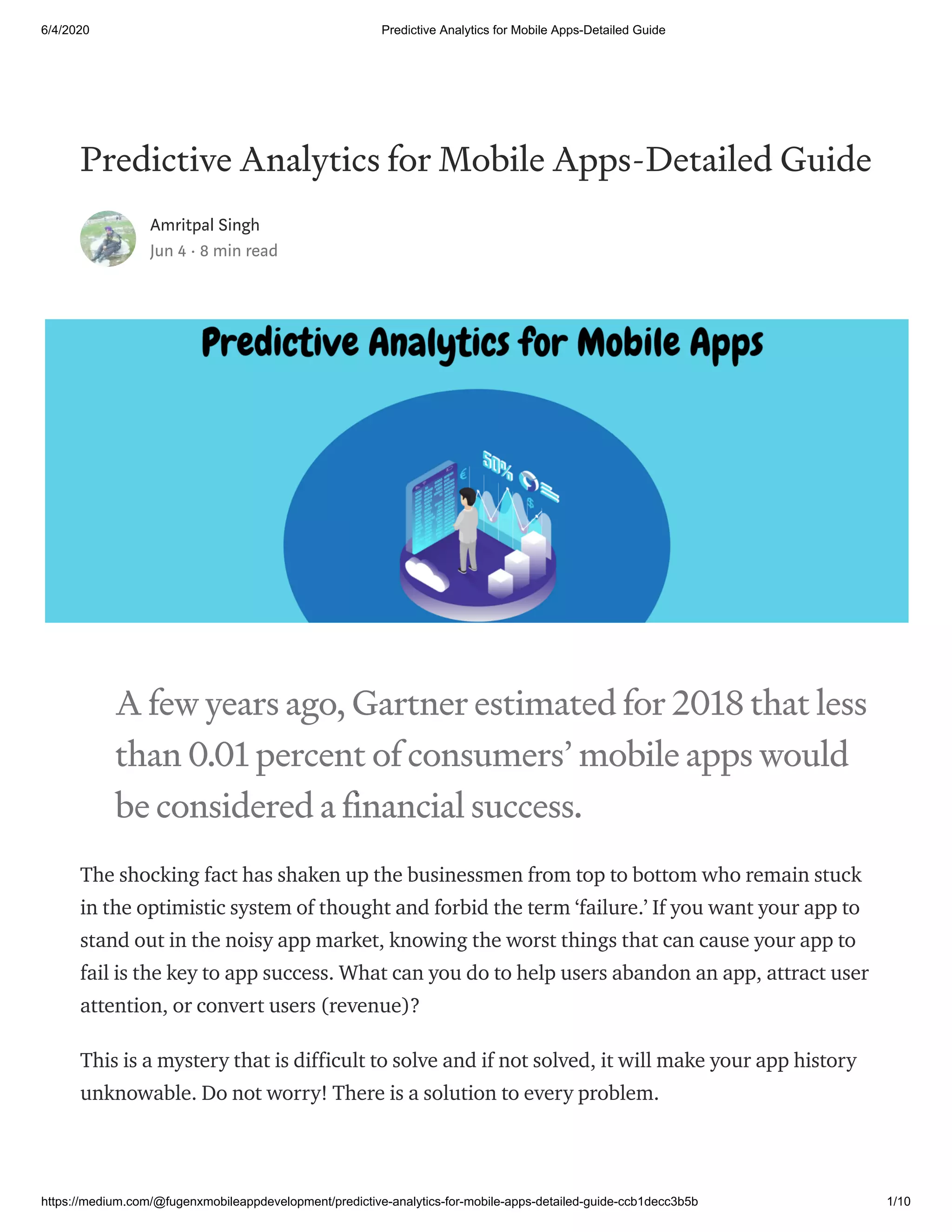 The document is a detailed guide on the use of predictive analytics in mobile app development, emphasizing its importance in enhancing user experience and app success. Predictive analytics helps developers anticipate user behaviors, drive sales, improve engagement, reduce risks, and optimize marketing strategies through data analysis. The guide also outlines potential applications and tools for implementing predictive analytics to leverage insights for building effective mobile applications.