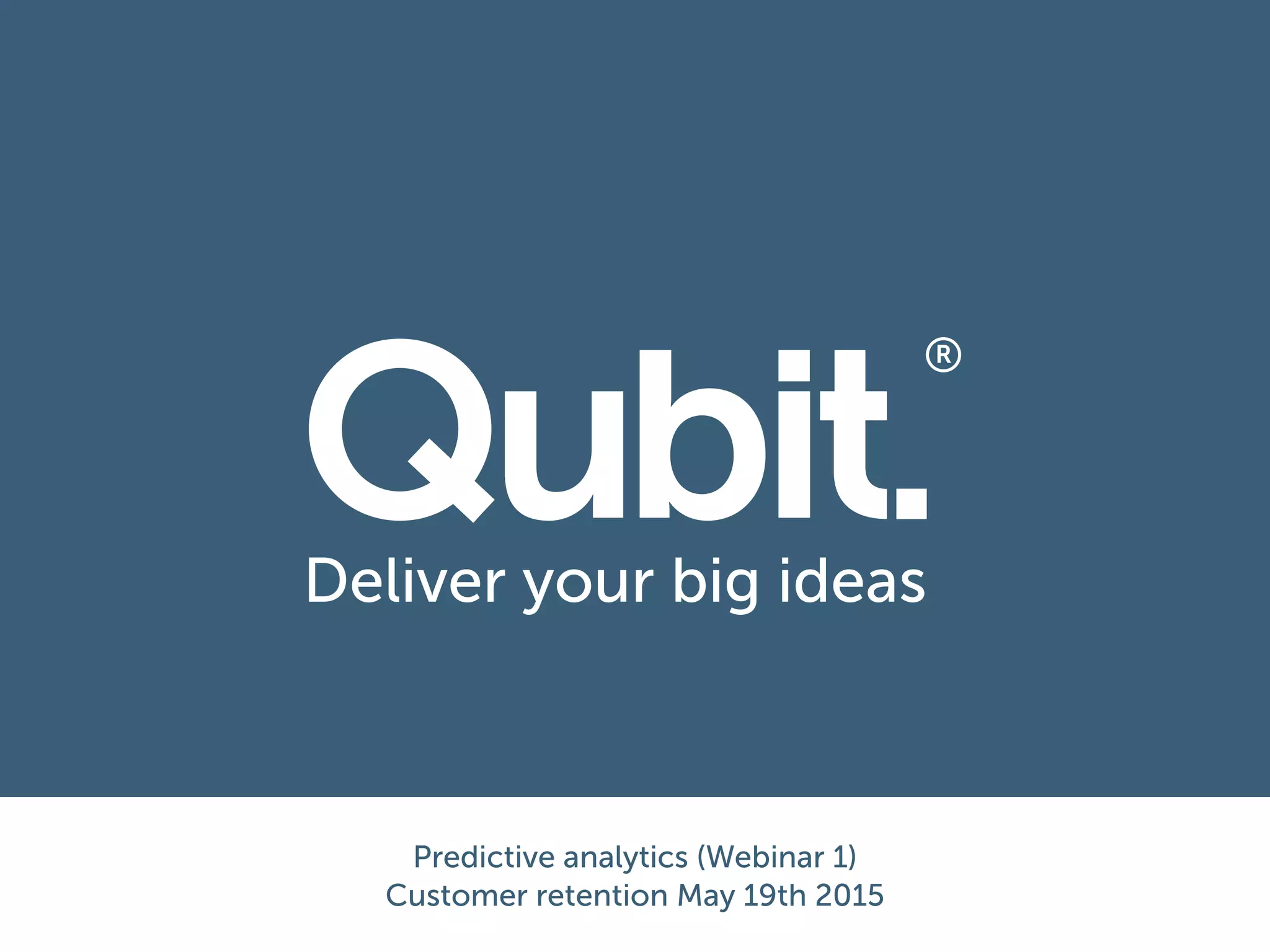 This document discusses using predictive analytics to improve customer retention. It outlines that predictive analytics can be used to analyze customer data to predict which customers are most at risk of churning (canceling their service). By understanding the causes of churn, companies can personalize the customer experience for at-risk customers, such as by cross-selling additional products or targeting discounts, in order to reduce churn. The document demonstrates how a predictive analytics tool called Qubit Decipher can analyze customer data to identify high-risk acquisition channels, behaviors, keywords, and individual customers to most effectively target retention efforts. Improving retention through predictive analytics can provide significant business value in increased revenue, customer lifetime value, and word-of-mouth referrals.
