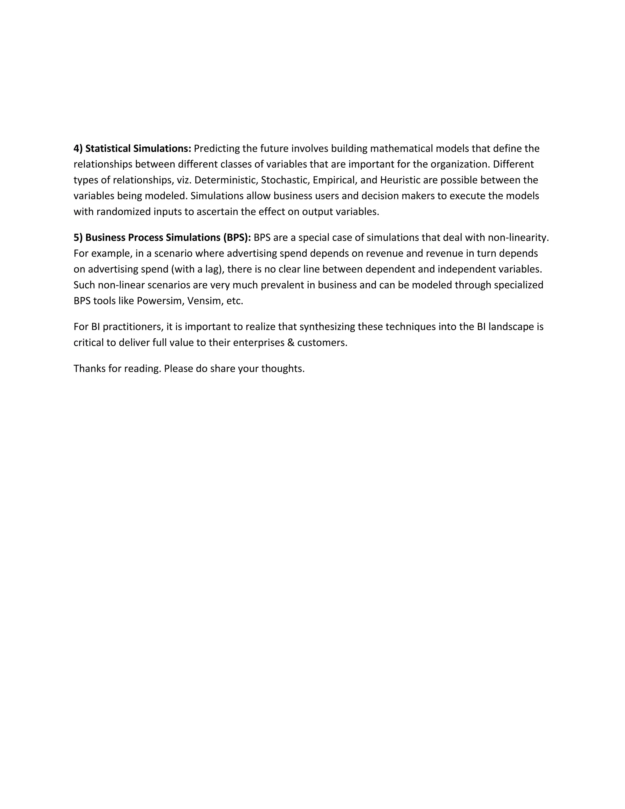 3) These techniques are most powerful when combined together to model specific business scenarios, allowing companies to make proactive, knowledge-driven decisions.