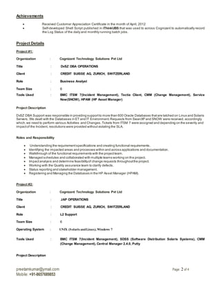 Preetam Kumar Sahu is seeking a position as a Business Analyst with over 4 years of experience in business analysis and working with various stakeholders to understand and document requirements. He has experience preparing documentation like BRDs and writing specifications. Some of his project experience includes working on applications for Credit Suisse and UBS in roles like business analyst, L2 support, and deployment. He is proficient with tools like BMC ITSM, SQL, and methodologies like Waterfall and Agile.