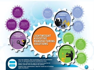 The document outlines CSIRO's role and achievements in future manufacturing, emphasizing its research in autonomous systems, robotics, and innovative technologies. It highlights the importance of adapting the manufacturing sector to emerging opportunities to enhance Australia's economic resilience. CSIRO operates numerous facilities and collaborates with global research institutions to drive advancements in various fields, aiming for a sustainable and productive future in manufacturing.