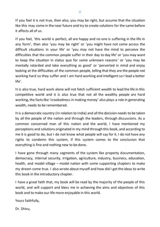 The author expresses a desire to improve the world and make it a better place for humanity through love, peace, and prosperity, while sharing personal insights and suggested solutions. The book does not aim to criticize the current systems but rather to propose ideas for positive change, acknowledging that situations may differ across various regions. Ultimately, the author hopes for broad readership and support in achieving these objectives.