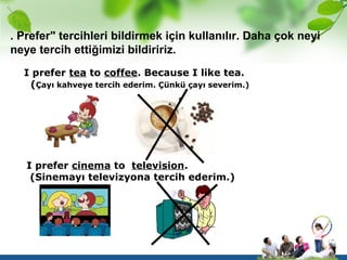 . Prefer" tercihleribildirmek için kullanılır. Daha çok neyi