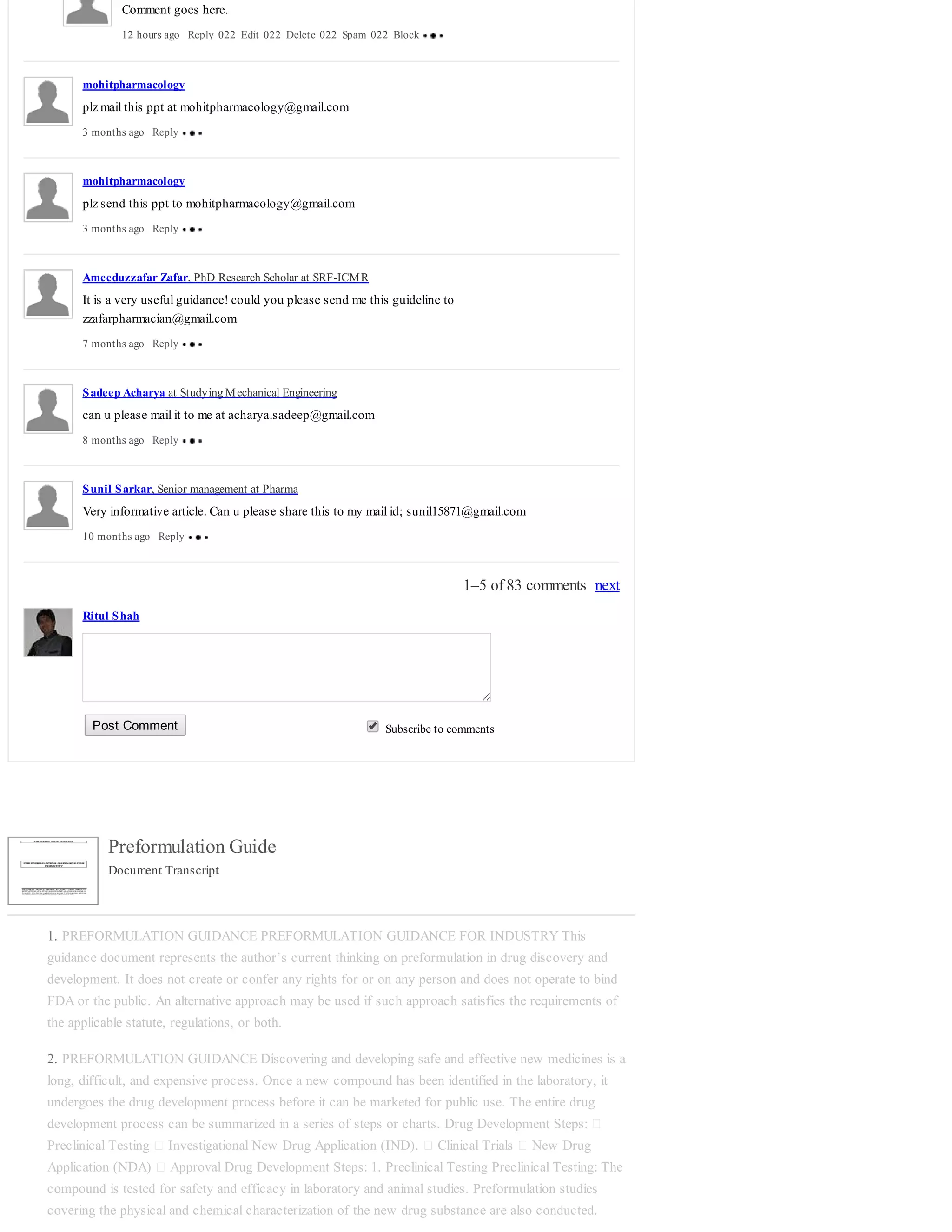 1. The document provides guidance on preformulation studies for new drug candidates. Preformulation involves characterizing the physical and chemical properties of a drug substance to aid in developing an optimal dosage form.