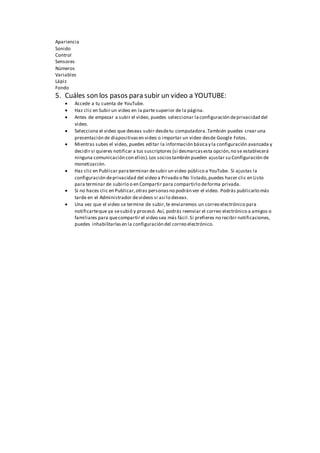 5. Cuáles sonlos pasos para subir un video a YOUTUBE: