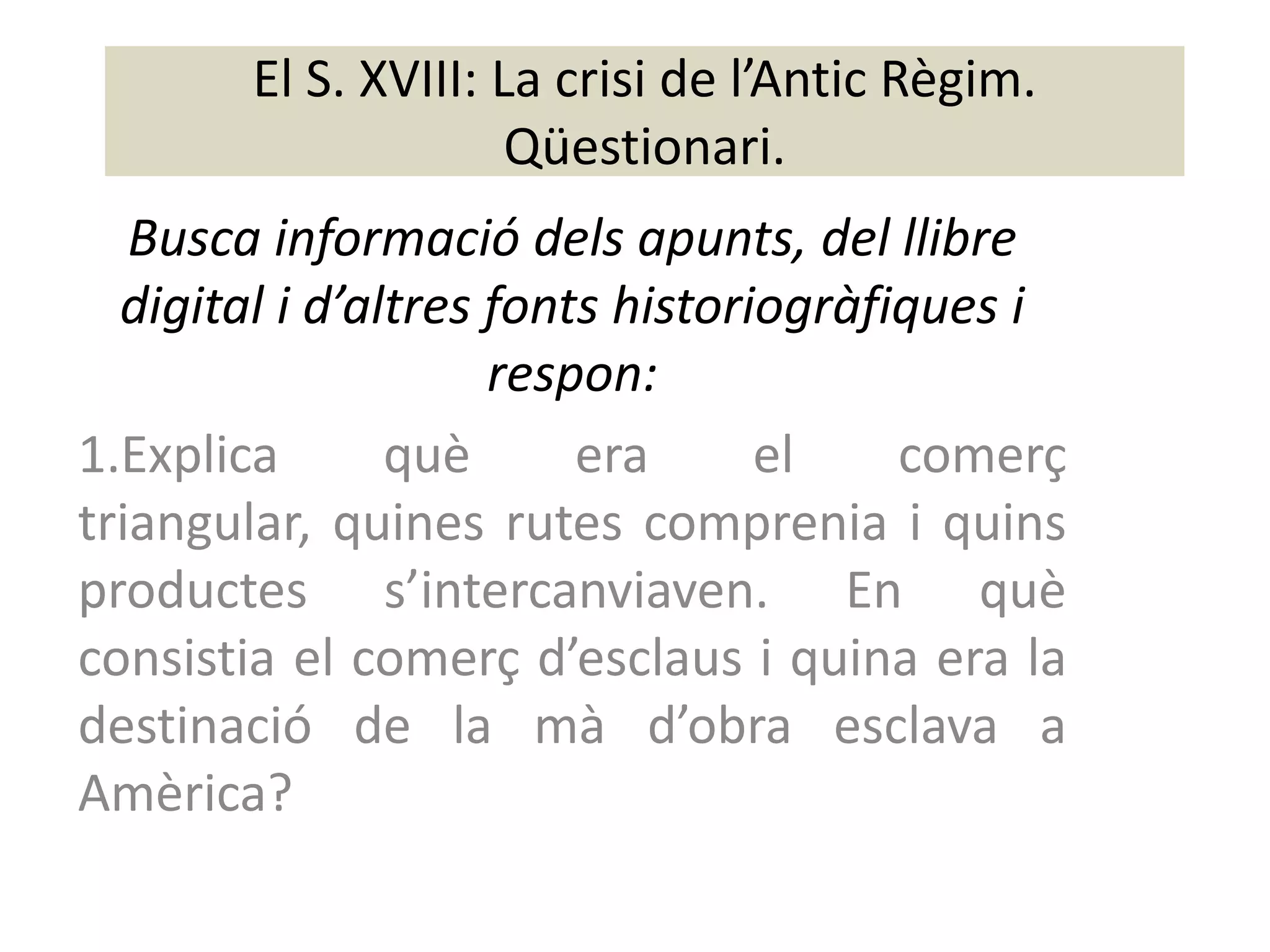 El S. XVIII:La crisi de l’Antic Règim.