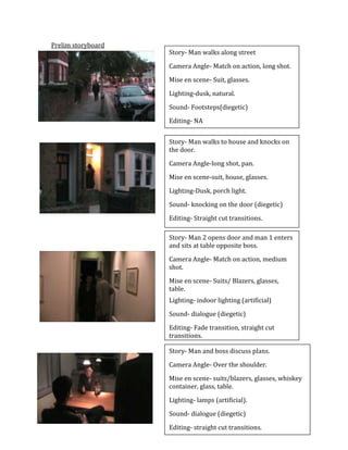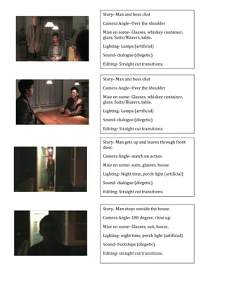 A man walks along a street at dusk and arrives at a house, knocking on the front door. Another man answers and the first man enters, sitting down at a table inside with his boss. The two men discuss plans over drinks, chatting together. Eventually the visiting man leaves through the front door, stopping outside briefly before departing into the night.