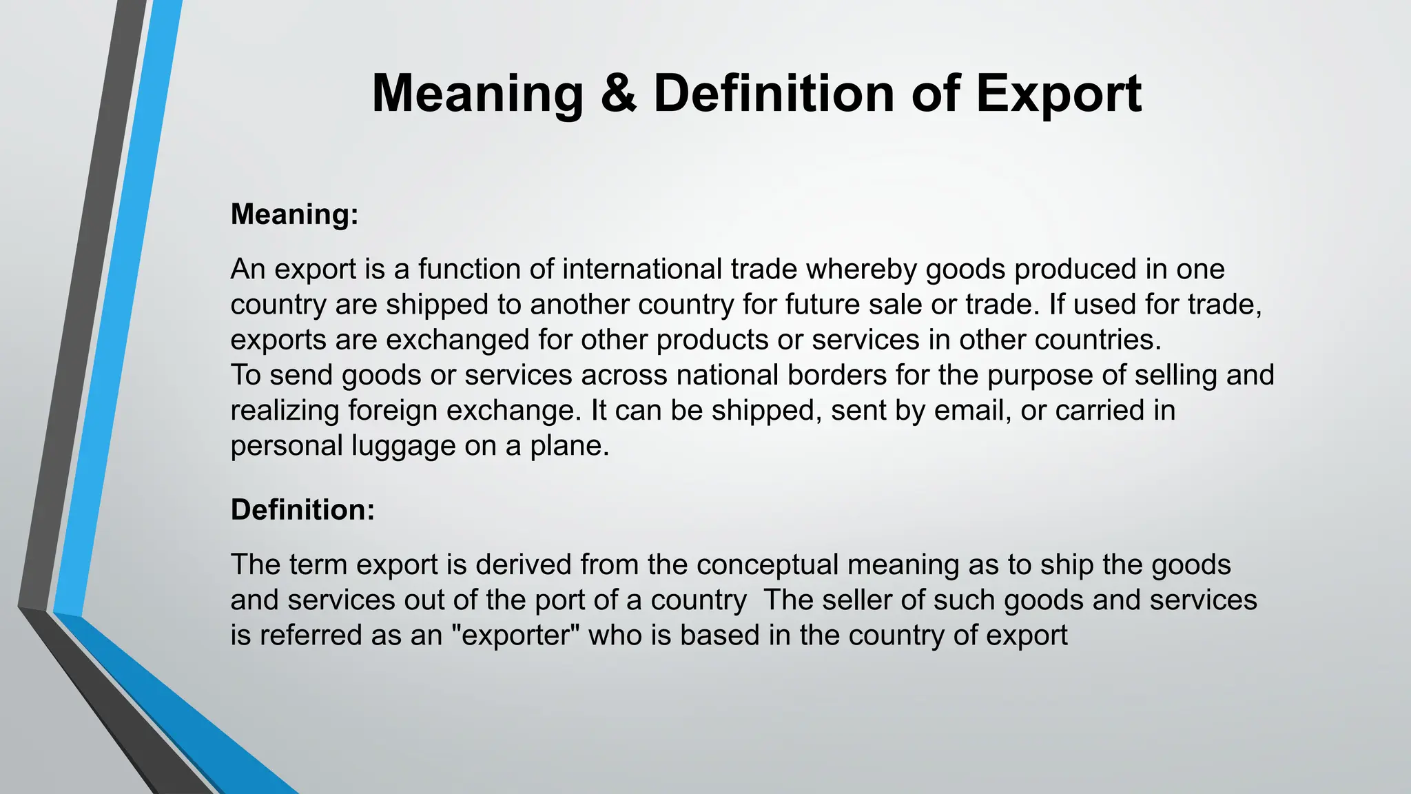 The document provides an overview of export and import definitions and processes, detailing the roles of exporters and importers, as well as the legal requirements for international trade. It explores methods of exporting, necessary registrations, and factors influencing export product selection, including logistical terms like FOB and CIF. Additionally, it discusses the importance, benefits, challenges, and classifications of imports, including different types of importers and the necessary licenses and standards.