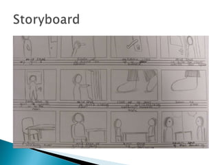 The document discusses different camera shots and angles used in filmmaking. It provides examples of shots like establishing shots, close-ups, and over the shoulder shots. It also includes a proposed shot list and script for a scene between two friends discussing a missing phone.