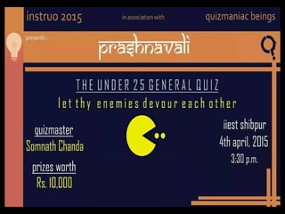 - The quiz rules outline that there are 26 questions worth 1 mark each, with questions 1, 4, 8, 12, 16, 20, and 24 being tie-breakers. The quiz master's decision is final.
