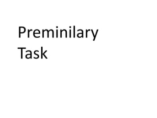 This document discusses the preliminary task of creating the front cover and contents page for a new school/college music magazine.