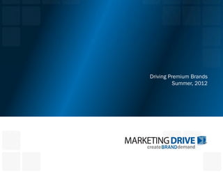 This document is an overview from a leading consumer promotion and shopper marketing agency called Marketing Drive. It was founded in 1989 and has 4 offices with 130 employees. The agency has top clients across many industries and has received high rankings as a top promotional marketing agency. The agency promises expertise in driving premium brands and provides consumer promotion, shopper marketing, social media, and retail execution services to its clients. Examples of projects are provided showing innovative campaigns across various industries.