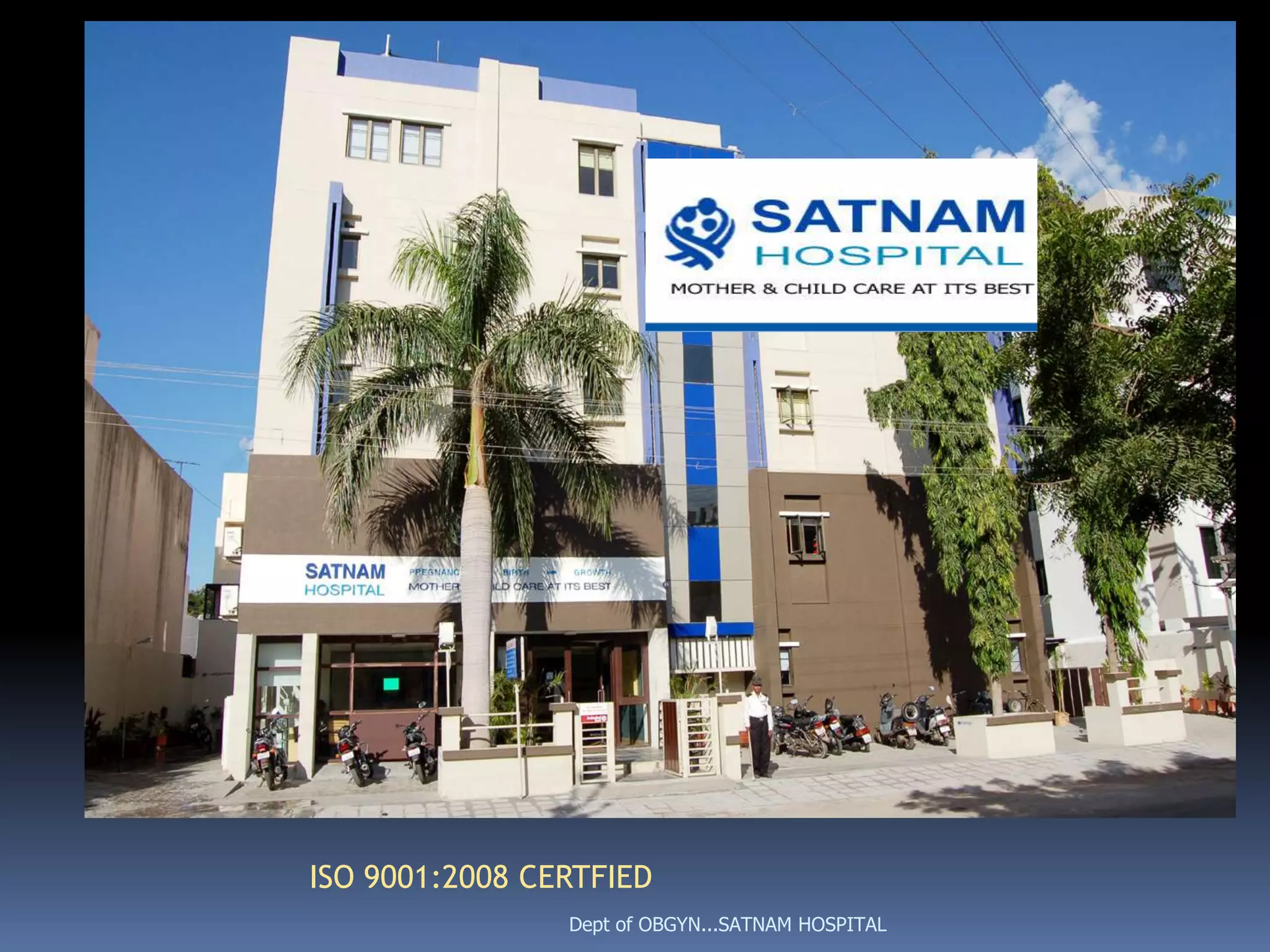 This document provides information from the Department of Obstetrics and Gynecology at Satnam Hospital in Rajkot, India. It discusses various topics related to pregnancy care including common symptoms, diet, self-care, medical care, and delivery. It emphasizes the importance of a balanced diet, cleanliness, exercise, and regular checkups with a doctor during pregnancy.