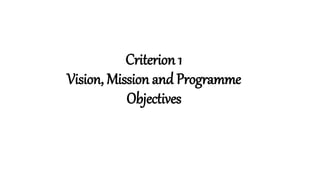 This document outlines the vision, mission, program objectives, and curriculum for an Electrical Engineering department. The vision is to be a center of excellence for electrical engineering education, training, and research. The mission includes offering continuing education programs, developing curricula, instructional materials, and undertaking research and consultancy. The program objectives are to develop technical and research skills, and generic skills. The curriculum spans 4 semesters and includes courses in various electrical engineering topics, laboratory courses, and a thesis. Program outcomes are defined and mapped to the curriculum and graduate attributes. Stakeholder feedback is incorporated into revising the curriculum and objectives. Student performance metrics like admissions, success rate, academic performance and placements are provided.