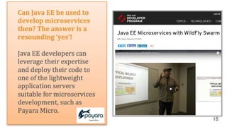 This presentation explain how to start the Microservices for Java EE developers. From monolithic application to micro services, not only separate the services but also must consider some point in this article.