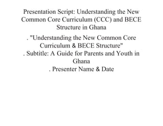 Common Core Curriculum (CCC) and BECE