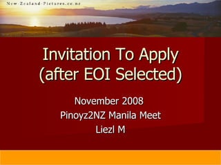This document provides information and instructions for applying for residence in New Zealand under the Skilled Migrant Category after receiving an Invitation to Apply. It outlines the documents required, including identity documents, work and education evidence, medical and police certificates, and an application checklist. Instructions are given on preparing application materials, submitting the complete package via courier, and the processing steps after application.