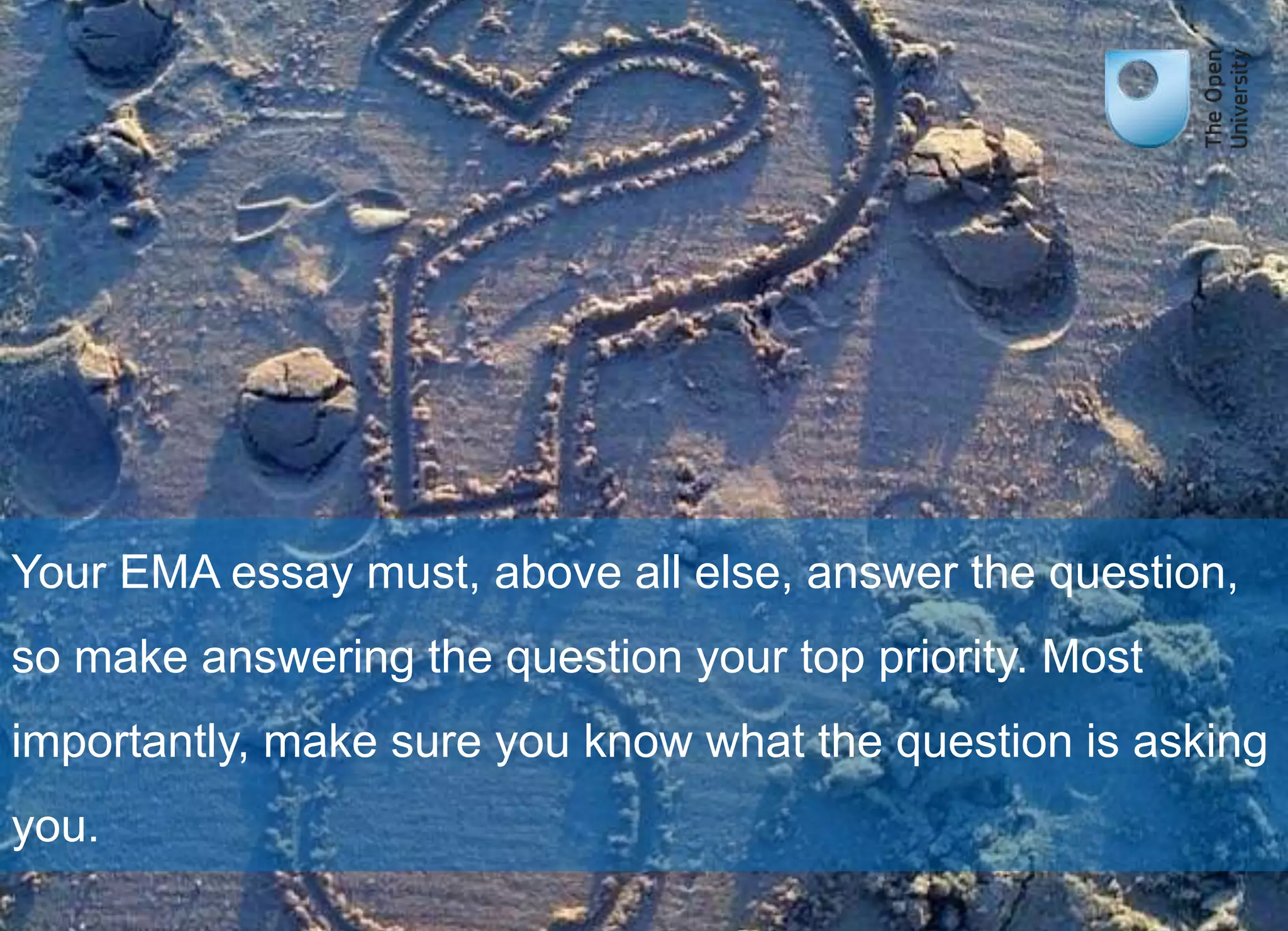 The document provides guidelines for writing an EMA essay, emphasizing the importance of answering the question and constructing a clear argument based on module materials. It stresses the need for careful planning, proper referencing, and a structured approach to ensure clarity and coherence in the essay. Additionally, it outlines specific submission requirements and encourages critical self-review before final submission.